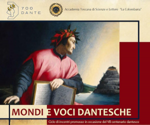 Lunedì 1 marzo dalle ore 17, per la Sezione Letteratura, Riccardo Pratesi parla su ‘Inferno, canto X’ nell’ambito delle celebrazioni per VII centenario della scomparsa di Dante Alighieri. Segue, per la Sezione Rapporti Internazionali, il regista Giancarlo Cauteruccio con l’intervento ‘Fatti di luce per un teatro immateriale’.