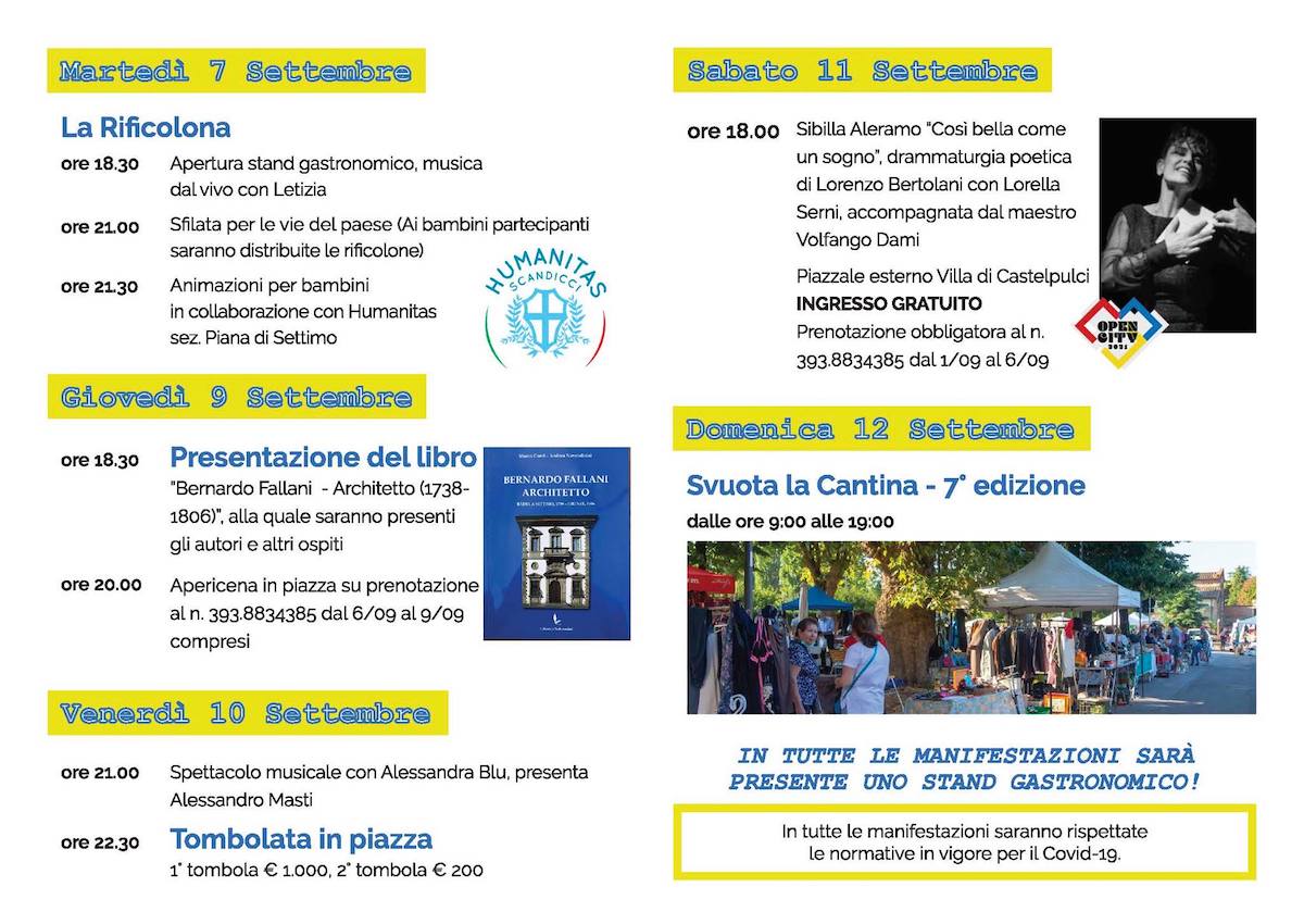 Domenica 12 settembre dalle 9 alle 19 7ª edizione del mercatino Svuota la cantina organizzato dalla proloco. Possono partecipare i privati cittadini che intendano vendere i propri oggetti usati. Info: 393.8834385