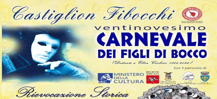 L’1 e 8 febbraio torna a Castiglion Fibocchi, per la 29ª edizione, il Carnevale dei Figli di Bocco. Un evento storico che risulta documentato fin dal XII secolo: dalle nozze tra Berta di Ardimanno e Guglielmo di Bernardino rimandate per i festeggiamenti del Carnevale, al rito della distribuzione della pastasciutta. Fin dalla mattina ci saranno spettacoli e incontri di vario genere, oltre a degustazioni e vendita di prodotti tipici del territorio. Da segnalare, alle 14.30, in entrambe le date il viaggio alla scoperta delle maestose opere barocche realizzate a mano. Mentre alle 17 dell’8 pomeriggio ci sarà la proclamazione della Maschera Regina e la sua investitura, l’esibizione degli sbandieratori della Città d’Arezzo alle 17.30, il gran spettacolo finale e la lettura del testamento.