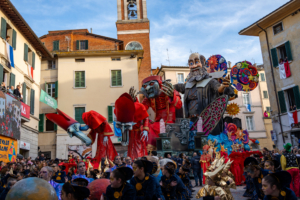 Infine domenica, ultima giornata di carnevale, si parte alle 10 con l’apertura dei Cantieri e l’uscita dei Carri Allegorici, mentre il centro storico accoglie i visitatori per le visite guidate e tanti appuntamenti per grandi e piccoli. Tra questi lo spazio Estra Fantasia in piazza Nencetti (orario 11-18), il laboratorio artigianale ‘Barber College’, il Gioco dell’oca in piazza Mazzini (orario 11-18), oltre a tanta musica e l’area street-food in piazza Cavour (orario 11-19). Alle ore 14.30 prende il via il quinto Corso mascherato ad aprire un pomeriggio di musica e festa, con la Scoriandolata (Terrazzone del Corso, ore 17) e la Rificolonata (centro storico, ore 18). Il gran finale è alle 19.30 con il Testamento di Re Giocondo e il verdetto finale.