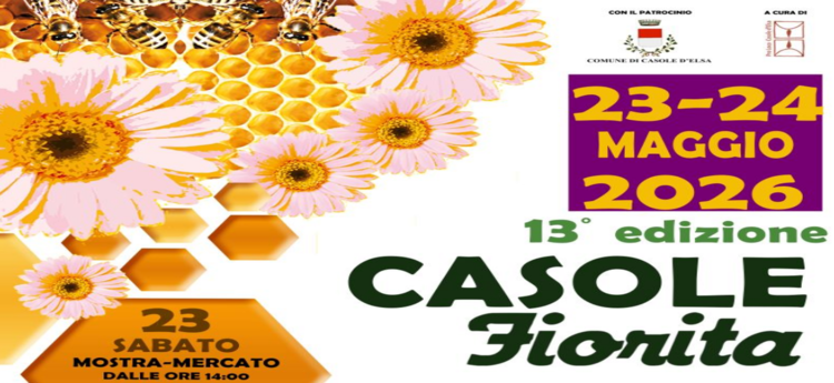 Il 23 e 24 maggio torna ‘Casole Fiorita’, la mostra mercato di fiori dedicata ai prodotti vivaistici e apiari. L’edizione, giunta alla 13ª edizione, offre un ricco programma di eventi pensati per tutte le età e di appuntamenti sia culturali che turistici. Aprirà sabato alle ore 14 e domenica alle 9, protraendosi fino a sera. Nella splendida cornice trionfante di fiori e piante, ci sarà spazio per il consueto street food e per l’intrattenimento musicale delle Bandidas, una street band di percussioni al femminile che farà ballare e divertire tutto il centro storico.