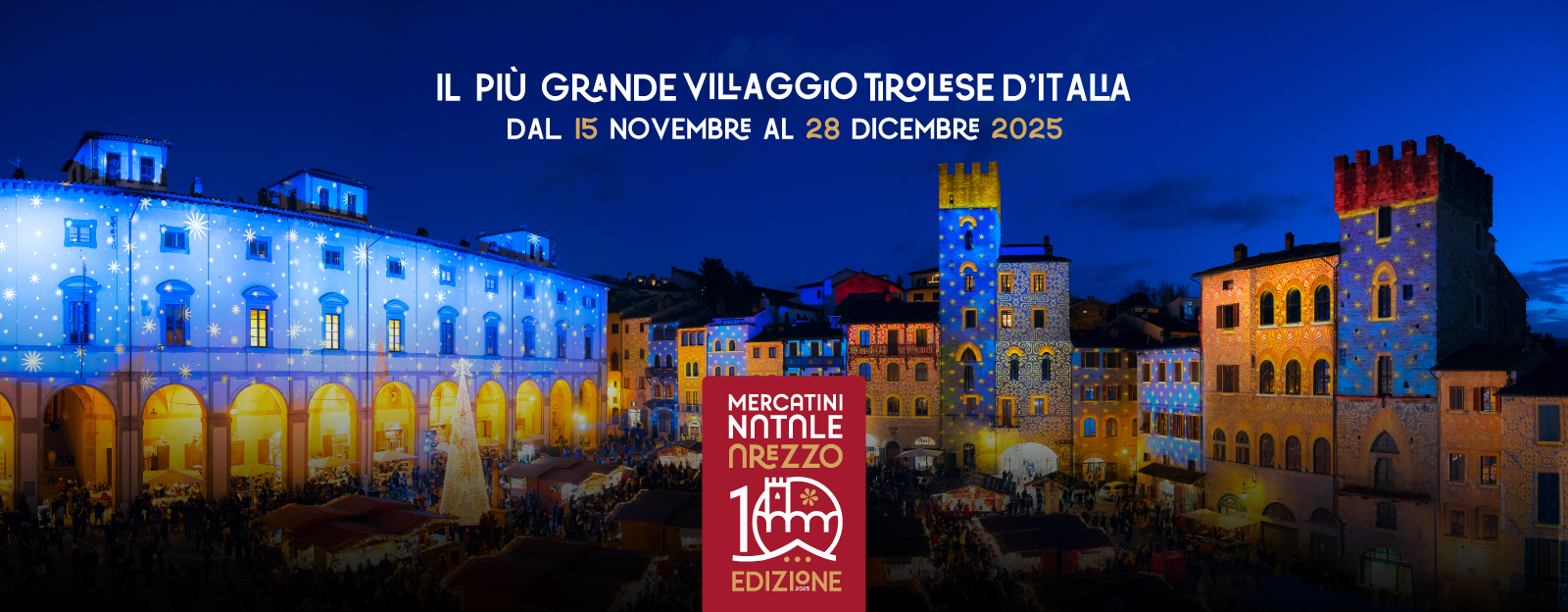 Dal 15 novembre al 28 dicembre Arezzo torna ad essere la ‘Città del Natale’ (pag. 25) e ci offre la 10ª edizione del Villaggio Tirolese, il più grande mercato tirolese d’Italia, allestito nella splendida Piazza Grande. Oltre quaranta casette in legno ospitano artigiani del Tirolo, del Trentino e della Germania con oggetti, decorazioni e specialità tipiche. Le Baite del Gusto, tre chalet provenienti direttamente dal Tirolo, propongono brezel, spätzle, canederli, polenta, formaggi fusi, birre artigianali e l’immancabile stinco arrosto. L’atmosfera si accende ogni sera con le Big Lights, proiezioni luminose e giochi di colore sulle facciate storiche della piazza, dalle 17 alle 21, accompagnate da musica e spettacoli. Accanto al mercatino e alla Casa di Babbo Natale nella Fortezza Medice torna anche la Brick House, la casa LEGO nel Palazzo di Fraternita, con oltre quaranta opere d’arte realizzate con i mattoncini più famosi del mondo. Il Villaggio Tirolese sarà aperto dal giovedì alla domenica fino al 18 dicembre, poi tutti i giorni fino al 28 dicembre (orario 10-21). Un’esperienza unica per grandi e piccini, tra profumi di spezie, luci e tradizioni del Natale alpino nel cuore della Toscana.
