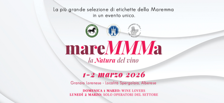 Torna ad Alberese, per la settima edizione, l’appuntamento con ‘mareMMMa, la Natura del vino’, che nel 2026 si presenta con una importante novità. L’evento raddoppia e per la prima volta si svolgerà in due giornate: domenica 1 marzo (14.30-18.30) per i ‘Wine lover’ e lunedì 2 marzo (10.30-18.30) esclusivamente per gli operatori del settore. La manifestazione nasce dalla sinergia tra i Consorzi delle tre Denominazioni della Maremma toscana – Maremma Toscana, Montecucco e Morellino di Scansano – e nella tradizionale location del salone centrale del Granaio Lorenese di Spergolaia, appassionati ed operatori avranno l’opportunità di conoscere da vicino e confrontarsi in maniera diretta con i produttori e la loro proposta enologica. Per partecipare all’evento è necessario fare prima una registrazione online.