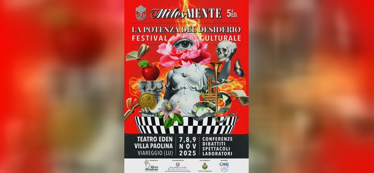 Teatro Eden e Villa Paolina il 7,8 e 9 novembre saranno le location a Viareggio della V edizione di Mèlosmente, il festival culturale che dal 7 al 9 novembre 2025 animerà la nostra città. Il tema scelto per quest’anno, “La potenza del desiderio”, promette di guidare il pubblico in un viaggio transdisciplinare in ciò che, come dice lo psicoanalista Recalcati, impedisce alla vita di diventare stretta: è la forza che ci spinge oltre i confini, che trasforma l’assenza in un motore di creatività e legami.