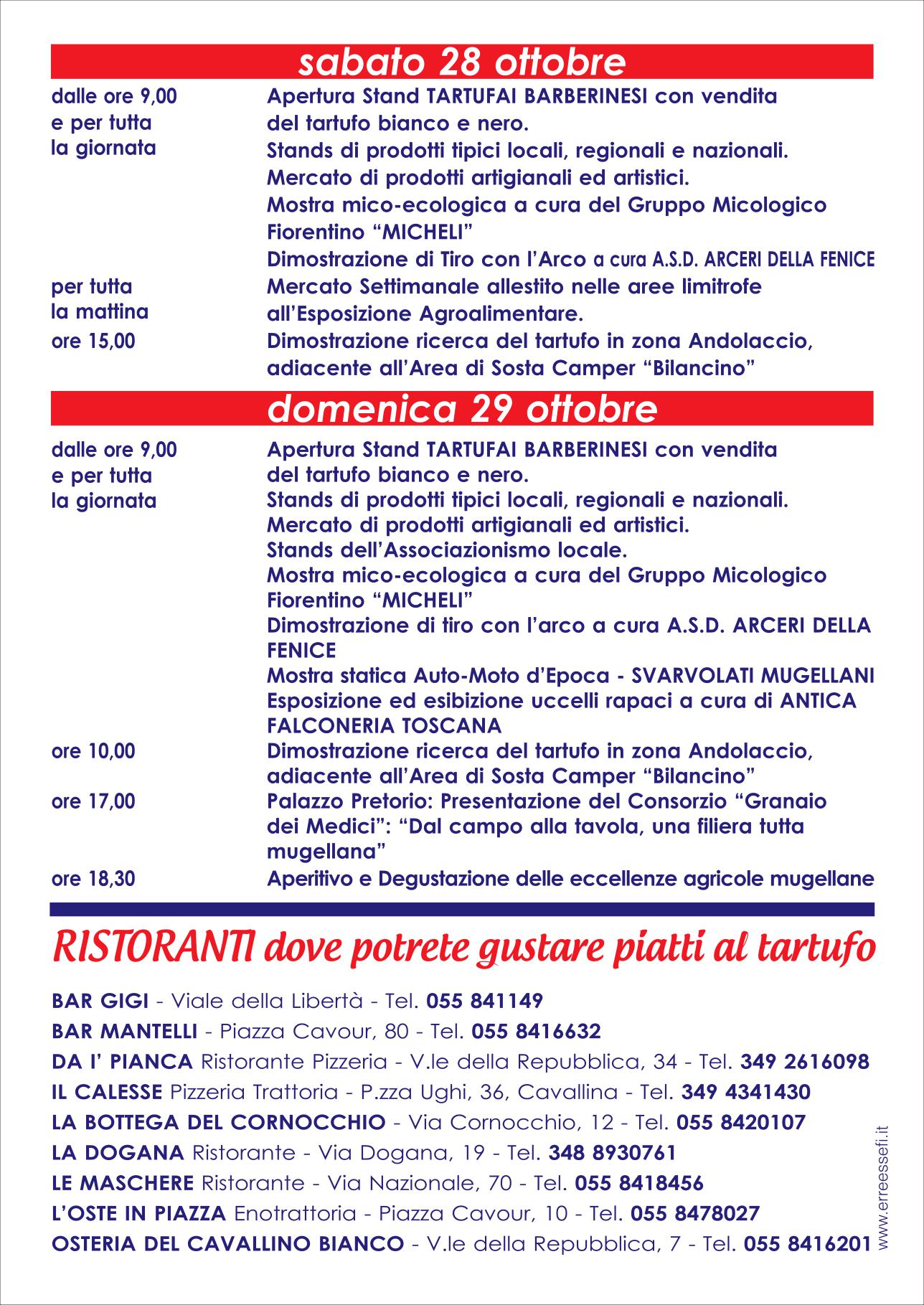 Domenica 29 esibizione di falchi a cura dell’Antica falconeria Toscana. Presso i ristoranti della zona sarà possibile degustare il tartufo con moltissimi piatti tipici.