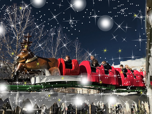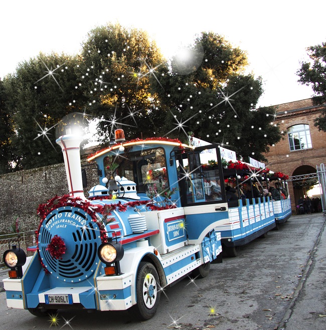 Infine, uno speciale trenino di Natale collega le vie del centro storico piene di luci e meravigliose vetrine al Regno di Babbo Natale.