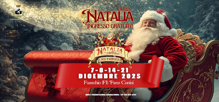 Ogni sabato e domenica (10-18) da dicembre a Befana, Fucecchio diventa il Paese di Babbo Natale con mercatini, stand gastronomici, street band, il trenino e la pista del ghiaccio, ingresso libero. Natalia è famosa per la parata di Babbo Natale con oltre 100 figuranti, con la Regina delle Neve, Rudolf, la fabbrica dei giocattoli e il grande carro di Babbo Natale con slitta e renne. Tante le attività: laboratori per bambini, la merenda con Babbo natale, Baby-Dance, spettacoli dal vivo e incontri con i personaggi delle fiabe, da Alice nel Paese delle Meraviglie a Willy Wonka e tanti altri, tra luci, neve artificiale e magia in ogni angolo del parco.
