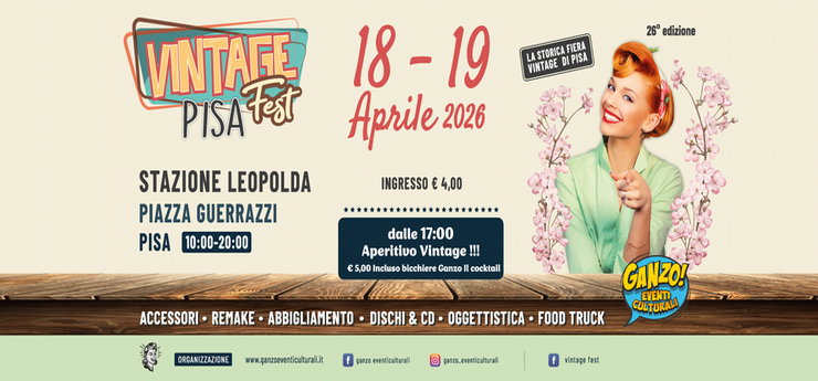 Il Pisa Vintage Fest è una mostra mercato dedicata alla cultura vintage che anima la storica Stazione Leopolda di Pisa sabato 18 e domenica 19 aprile dalle 10 alle 20. È un evento ideale per gli amanti dello stile retrò, del collezionismo e del fashion d’epoca, con decine di espositori nazionali che propongono abbigliamento vintage, accessori, vinili, oggettistica e curiosità provenienti da diverse epoche. La manifestazione offre un’atmosfera immersiva nel passato, valorizzata dalla presenza di stand di artigianato creativo, aree food con street food e birre artigianali, e spazi dedicati alla socializzazione.