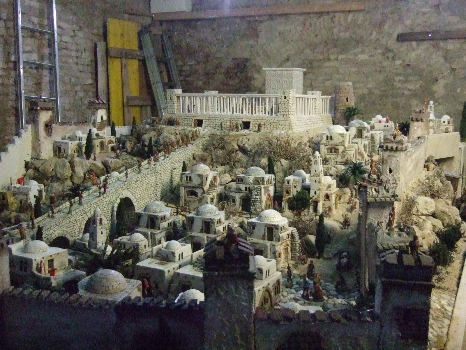 All’inizio del suo percorso, in parte all’esterno, anche se protetto, il visitatore troverà alcuni elementi tipici della Cristianità in Roma, per poi entrare nel percorso vero e proprio. La rappresentazione si sviluppa su circa 100 metri quadrati immersi nelle atmosfere della Terra Santa di 2000 anni fa, il visitatore diviene il pellegrino lungo la strada tracciata dal Signore, nella quale può ritrovare una serie di rappresentazioni artistico-meccaniche spettacolari associata ad effetti di luce, sonori, olfattivi e scenografici molto suggestivi.