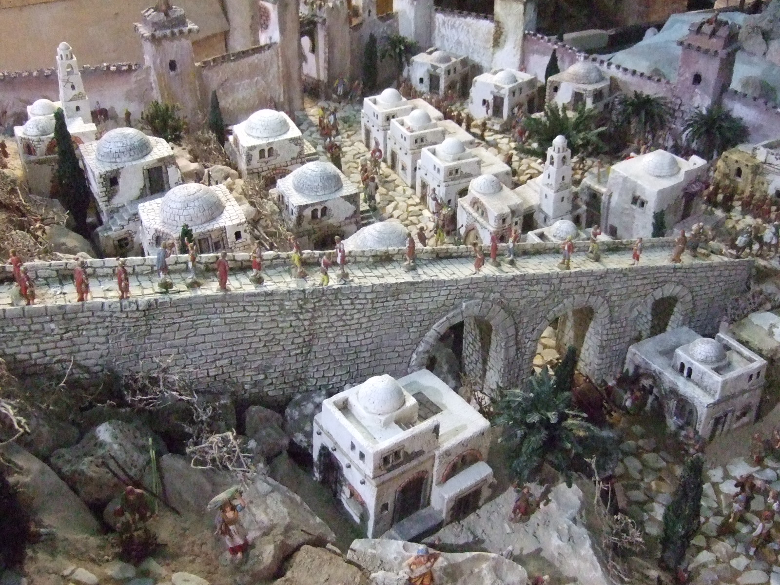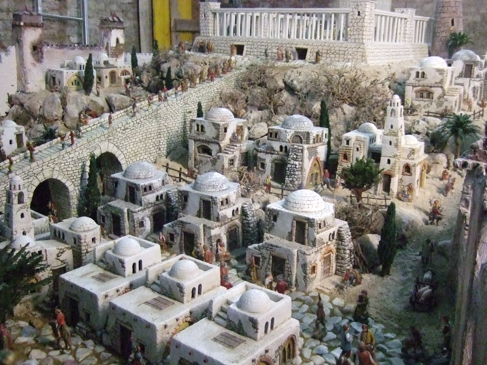 Per questo viene anche definito il “Presepe Sensoriale”, perché appaga la vista, con lo studio ricercato dei cicli giorno-notte, lo splendore dei tramonti e dei cieli stellati e lo splendido percorso all’interno delle principali città della vita di Gesù (Nazareth con rappresentata l’annunciazione, Betlemme con la capanna dove in questa edizione il visitatore si trova ad attraversarla come i pastori di un tempo, Gerusalemme nella sua sontuosità ed infine il deserto, con le sue scene di vita beduina); appaga l’olfatto, perché è possibile immergersi nei profumi tipici della Palestina; appaga l’udito attraverso i suoni campestri della vita quotidiana di Betlemme e dello scorrere silente del fiume Giordano e appaga anche il tatto, attraverso la sabbia del deserto e della roccia tipica della regione. Il tutto realizzato con particolare cura dei dettagli e contornato da una spettacolare vitalità resa da numerosi personaggi in movimento.