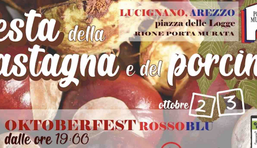 Sabato 23 e domenica 24 ottobre in piazza delle Logge a Lucignano appuntamento a Lucignano con la Festa della Castagna e del Porcino. Castagne arrosto, castagnacci, dolci e tanto altro, e per l’intera durata della festa sarà presente lo spillatore della birra targata Saragiolino. Sabato 23 ottobre Oktoberfest RossoBlu: dalle ore 19 panini e patatine, stuzzichini, castagne, acqua, vino e …